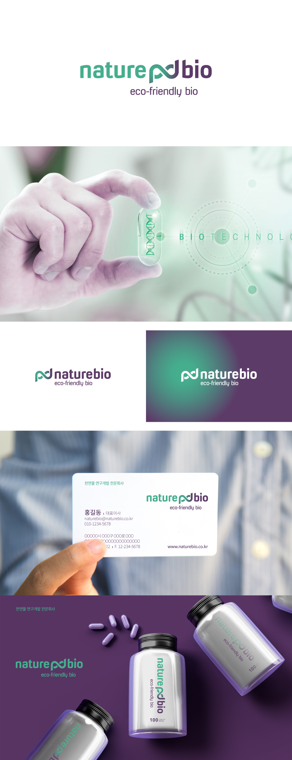 Eco-friendly Bio라는 슬로건에 맞게 nature의 'N'과 'BIO', 'DNA', 'R &D', 'Remedy'를 그래픽 모티프로 개발하였으며 아이덴티티 컬러는 자연의 컬러인 'green'으로 친환경 바이오기업임을 표현하고 치료의 컬러인 'purple'로 개발하였습니다.